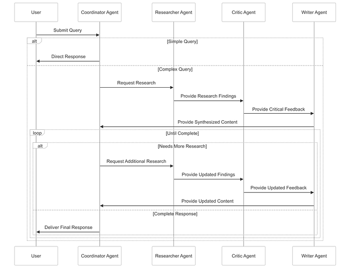 Throughout this article, we’ll build a collaborative research assistant system with multiple specialized agents:
