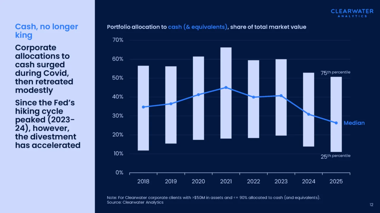 Amid rate cuts and dipping cash allocations, what assets are corporates turning to instead?