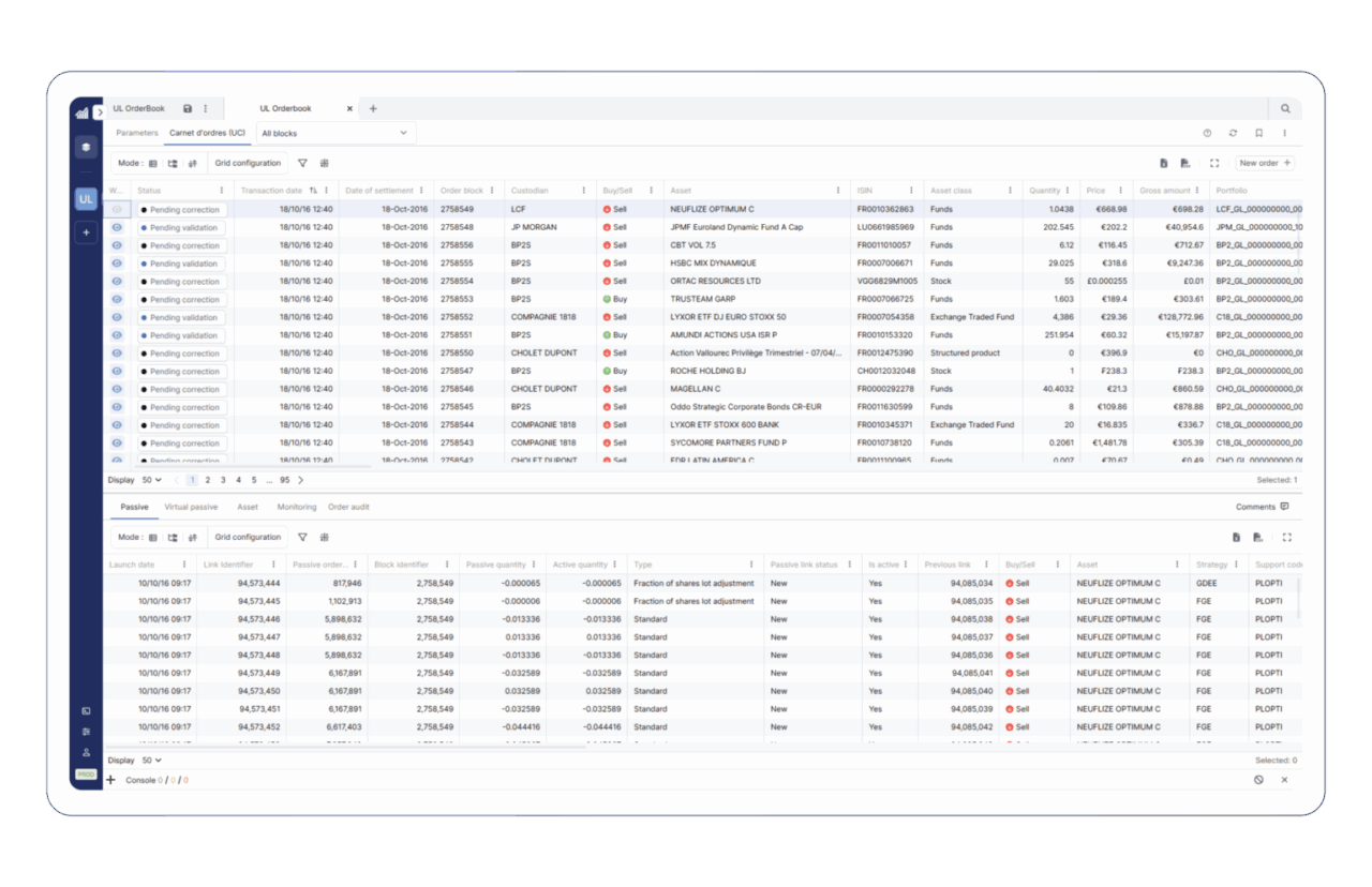 Die Plattform integriert sich nahtlos in Ihr Informationssystem (Multi-Passiva, Depotbanken, Datenanbieter, Vermögensverwaltungsgesellschaften) und ermöglicht eine Echtzeitverwaltung Ihrer fondsgebundenen Lebensversicherungen.